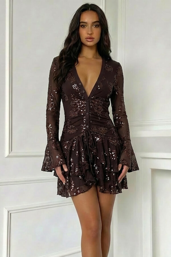 Μίντι φόρεμα ριπ, εφαρμοστό, με μακριά μανίκια και στρογγυλό ντεκολτέ. Μήκος 108cm στήθος 40cm μανίκι 60cm