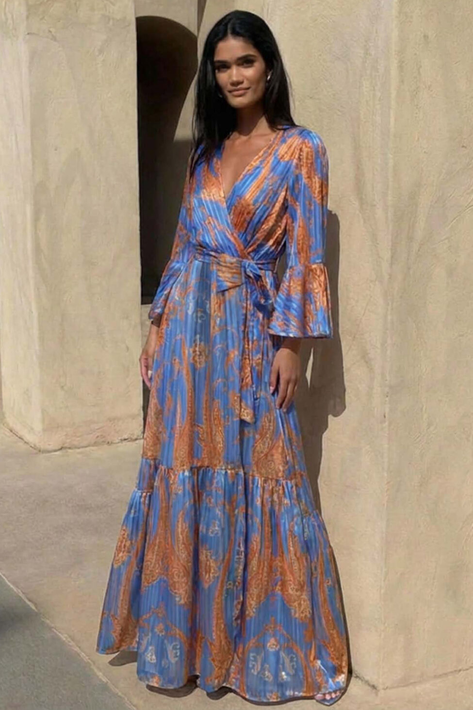 Αυτό το εντυπωσιακό μάξι boho φόρεμα λαχούρια αποτελεί την ιδανική επιλογή για εντυπωσιακές βραδινές ή κοινωνικές εμφανίσεις, όπως γάμους και βαφτίσεις.
