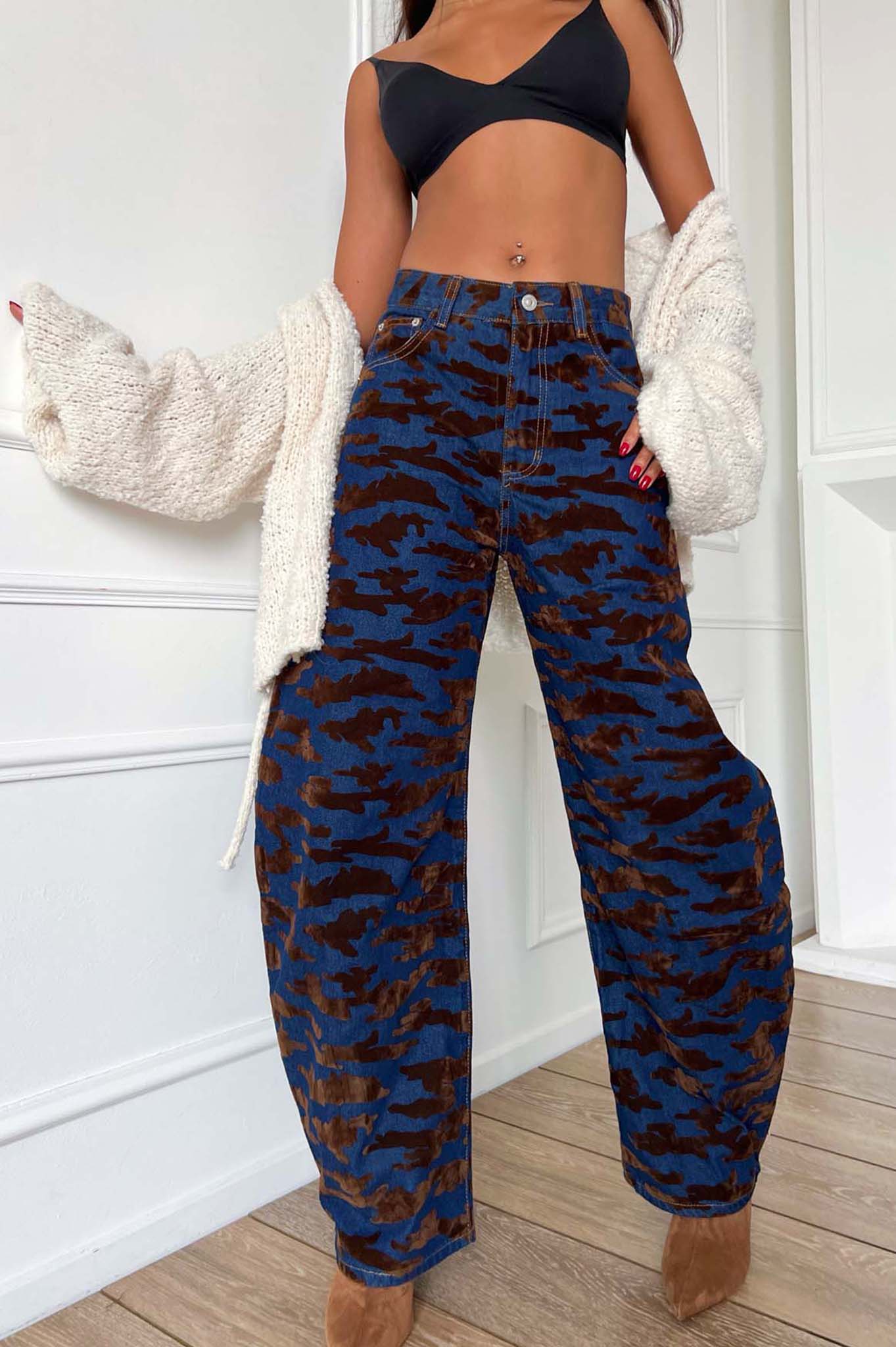 Τζιν με ανάγλυφο σχέδιο για στυλ και άνεση. Μετρήσεις σε Small νούμερο: μήκος 100cm, μέση 66cm.