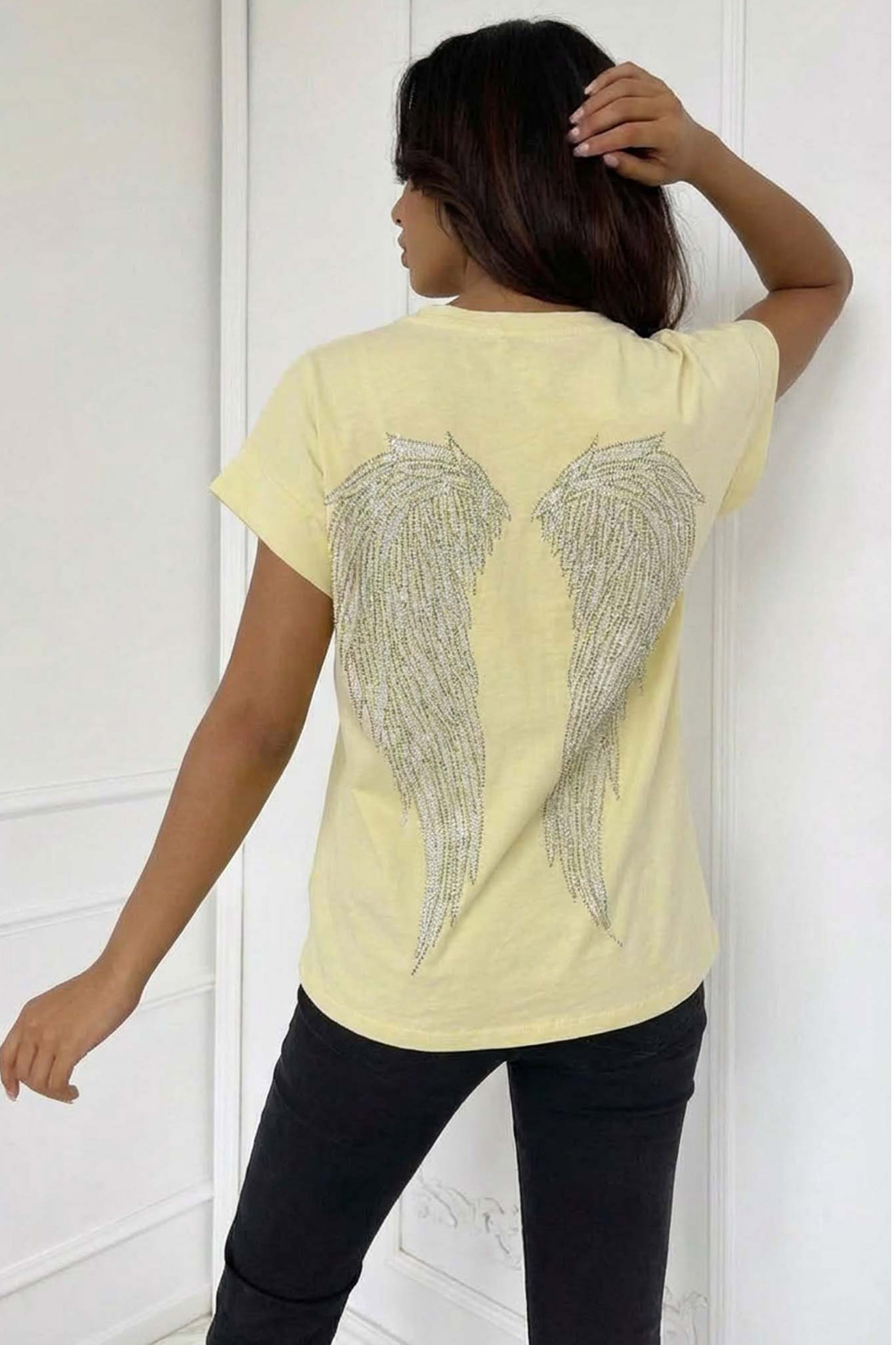 Wingst-shirt με strass κίτρινο