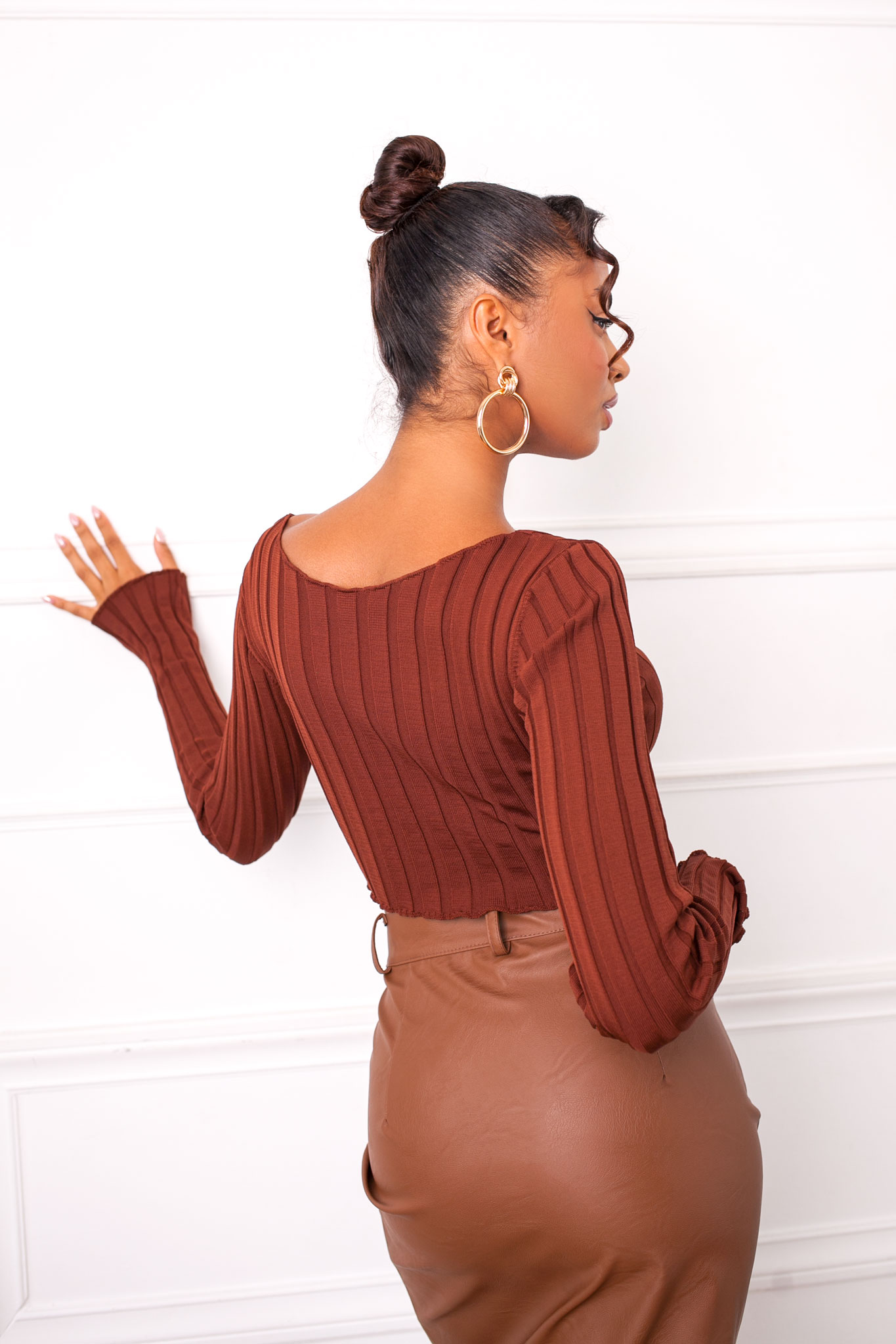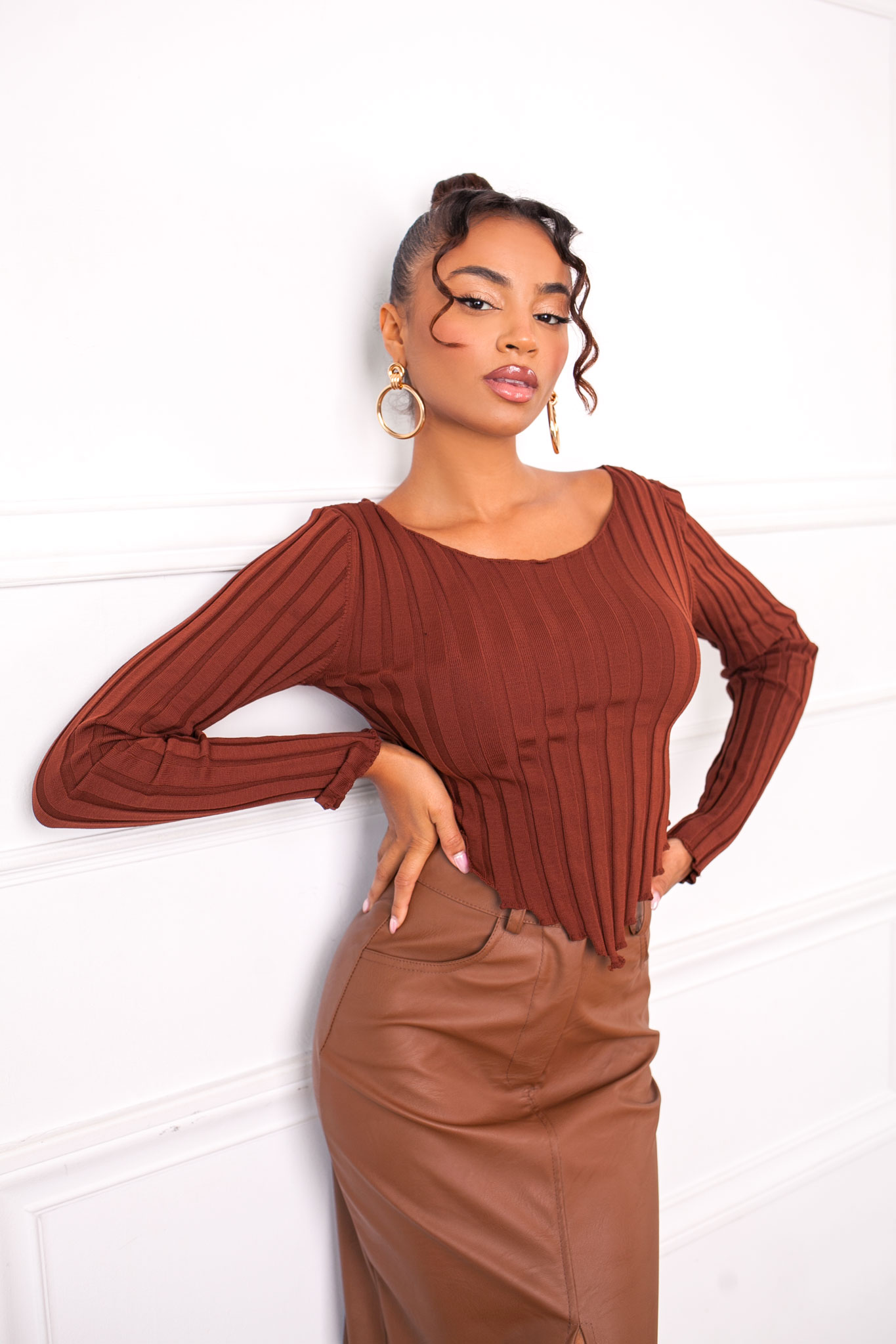 Πλεκτό τοπ ασύμμετρο με μακριά μανίκια. Μήκος 37cm Στήθος 26cm Μανίκι 61cm