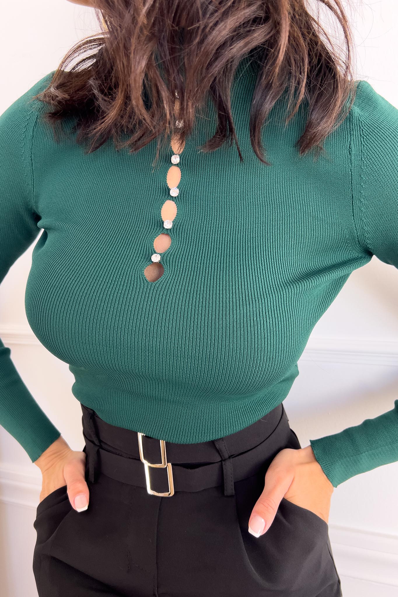 Μπλούζα με μακριά ριπ ελαστική με υπερυψωμένη λαιμόκοψη και μικρά ανοίγματα στο μπούστο.