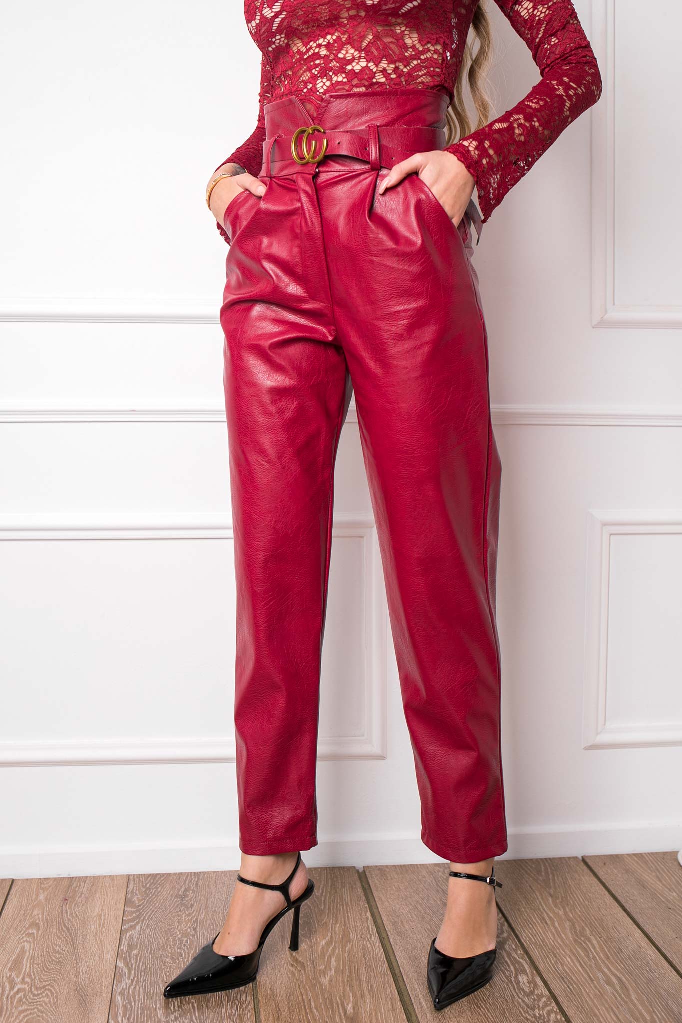 Yetπαντελόνι από οικολογικό δέρμα μπορντό