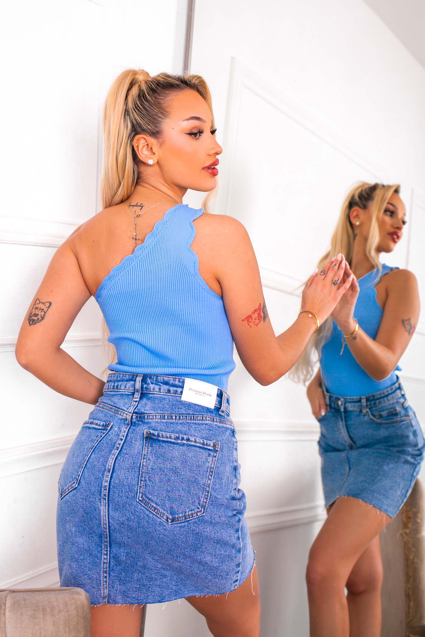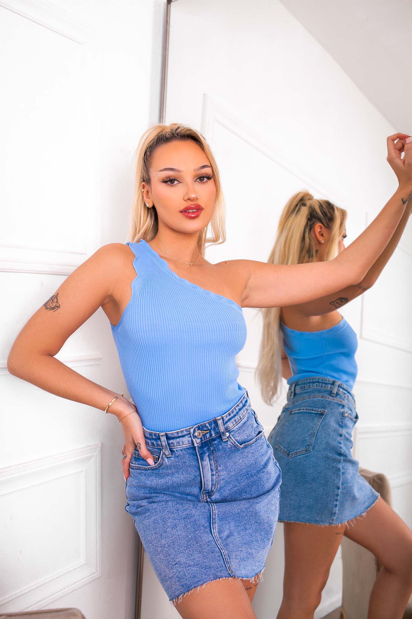 Ένα ριπ τοπ με έναν ώμο είναι μια μοντέρνα επιλογή που προσδίδει στυλ και θηλυκότητα στην εμφάνιση. Το στυλ με έναν ώμο αποκαλύπτει ελαφρώς την περιοχή του λαιμού και του ώμου, προσθέτοντας μια απόχρωση δροσερής και κομψής αισθητικής. Μήκος 52cm Στήθος 29cm