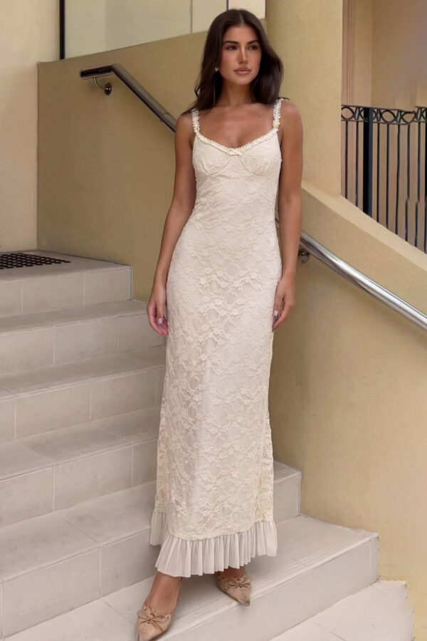 Μίνι φόρεμα σε γραμμή άλφα διακρίνεται για τον θηλυκό σχεδιασμό του, ο οποίος συνδυάζει μπούστο τύπου κορσέ με ενσωματωμένες μπανέλες και λεπτές τιράντες που δένουν κομψά στους ώμους. Η στενή εφαρμογή στον κορμό αναδεικνύει τη μέση, από την οποία ξεκινά μια ανάλαφρη, κλος φούστα με διακριτικές πιέτες που προσδίδουν κίνηση και όγκο στο κάτω μέρος.