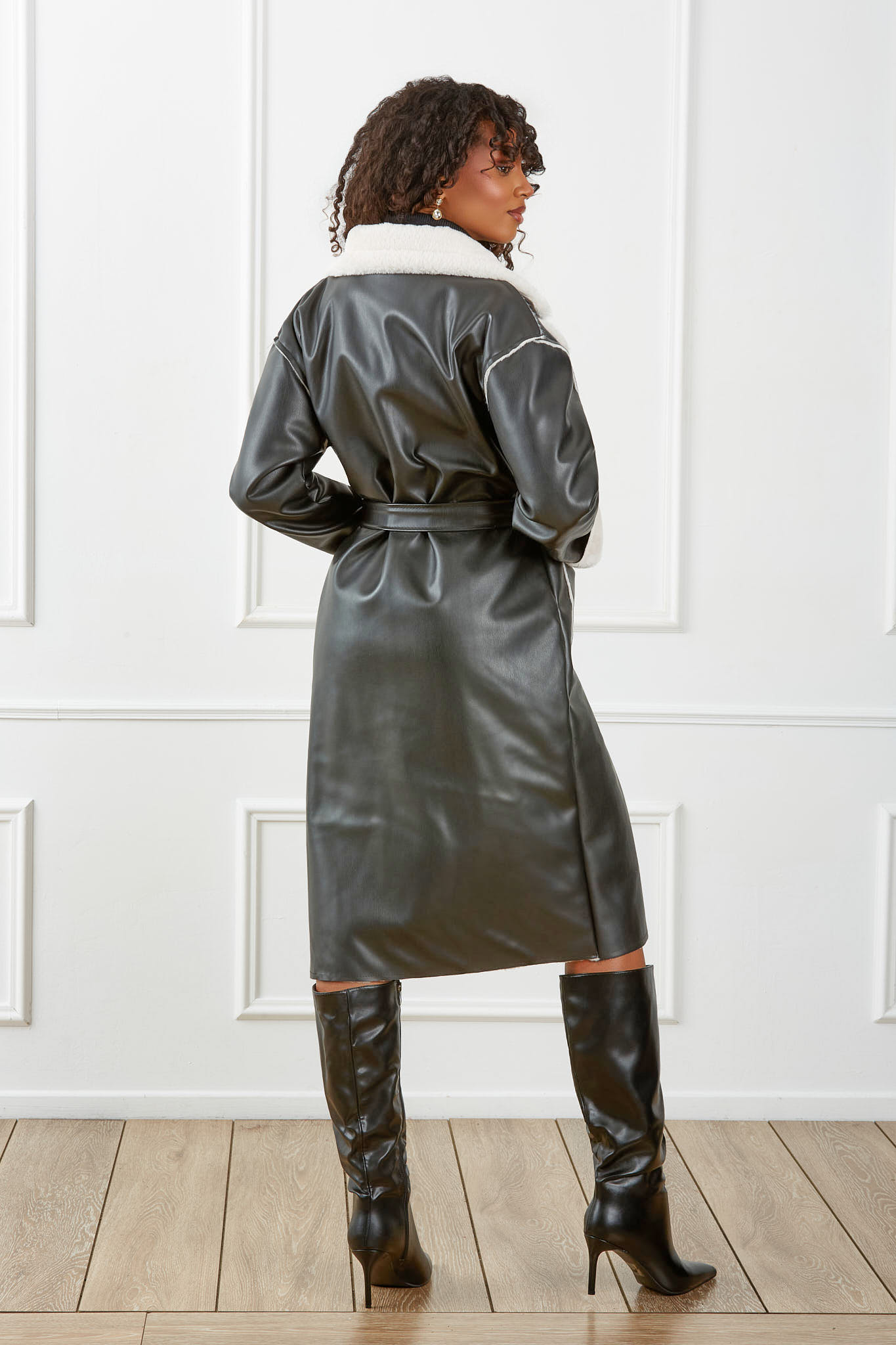 Παλτό από οικολογικό δέρμα με fleece στο εσωτερικό. Μήκος 105cm,στήθος 50cm, μανίκι 52cm.