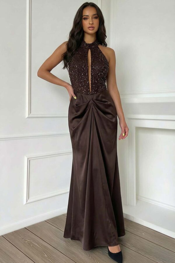 Μίνι φόρεμα κλος, lurex, με φαρδιές τιράντες, ανοιχτή πλάτη και δέσιμο στη μέση. Μήκος 80cm στήθος 40cm