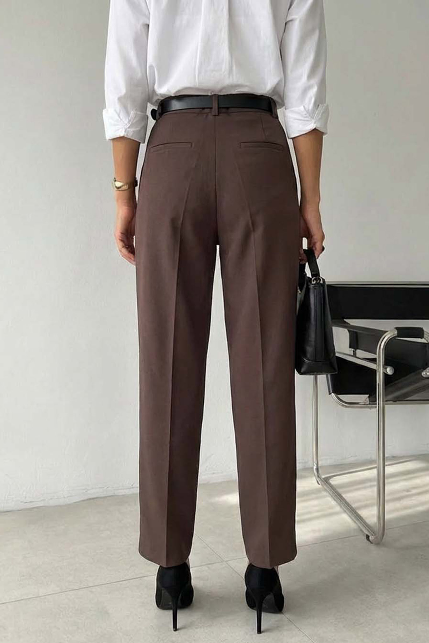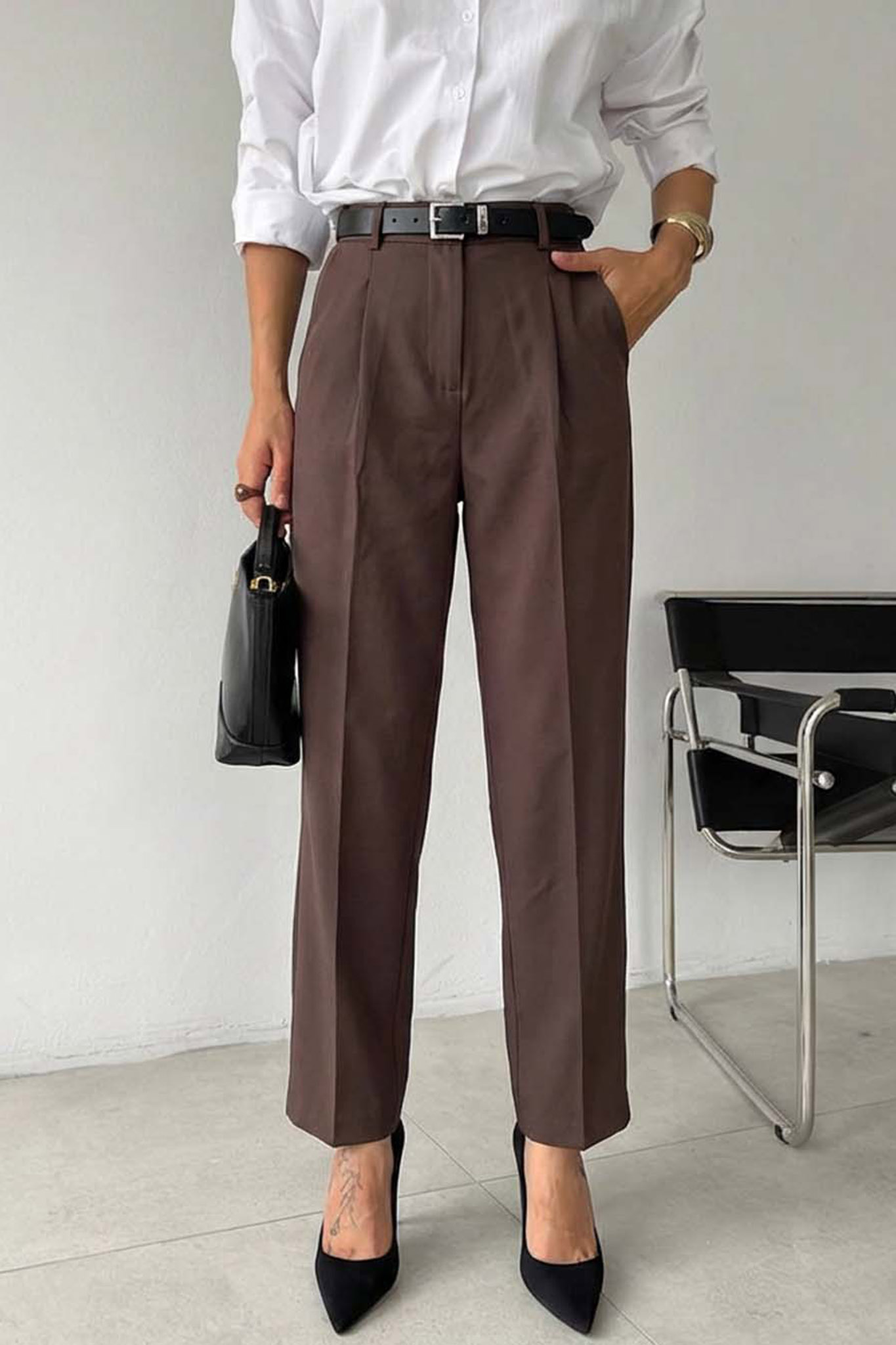Υφασμάτινο παντελόνι προσφέρει μια σοφιστικέ και διαχρονική εμφάνιση. Η ψηλόμεση γραμμή με τις πιέτες στο μπροστινό μέρος και η κομψή τσακίση στα μπατζάκια δημιουργούν μια άψογη σιλουέτα, ιδανική για το γραφείο ή επίσημες περιστάσεις.